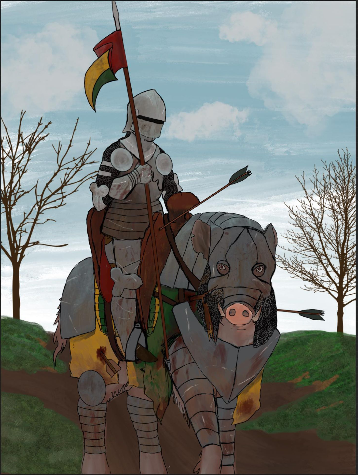 En hildsvinsryttare i full mundering.